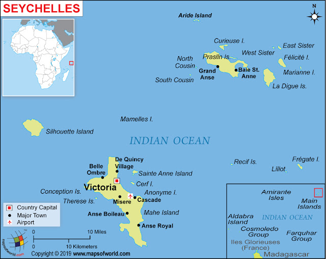 Seychellen is een vanaf 1794 onderdeel van het Britse rijk geweest maar daarvoor was het Frans. Het land geeft meer een Franse indruk dan Brits en veel plaats- en achternamen zijn Frans. Seychellen moet het meest hebben van toerisme en de beste tijd om erheen te gaan is van mei tot november. Dan staat de wind het best en daardoor wordt het niet te heet. De meeste mensen komen voor de stranden en wat erbij komt kijken. Maar de natuur is er prachtig en dat zelfs in hun grondwet dat de regering er voor moet zorgen dat het zo blijft. Dat grote ding wat de Seychelse jongen draagt is een coco de mer, het grootste zaadje ter wereld met een diameter van 40–50 cm hebben en 15–30 kg wegen.